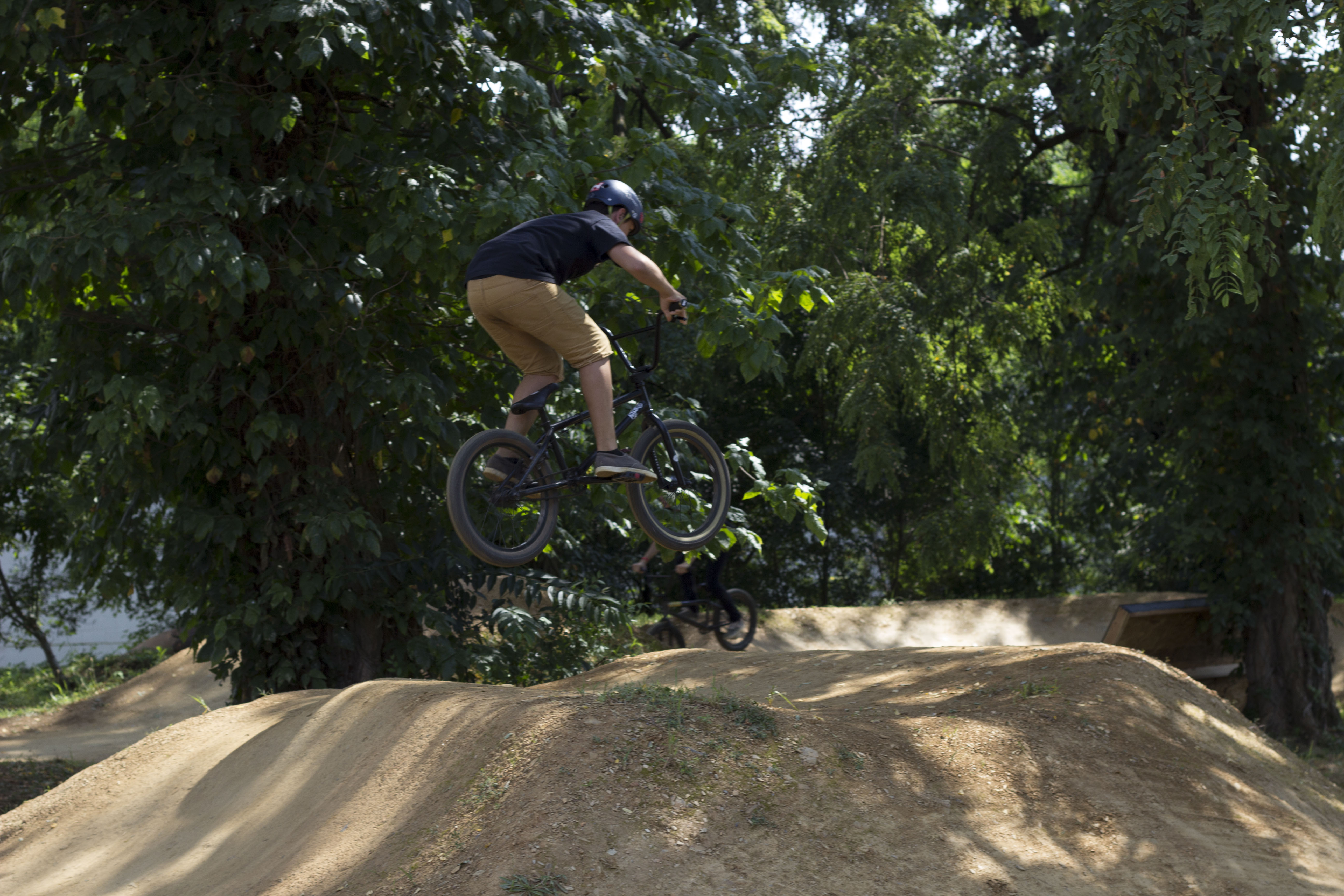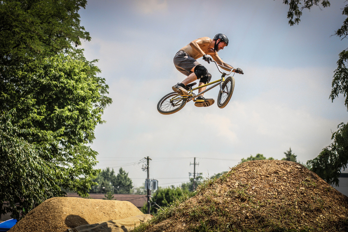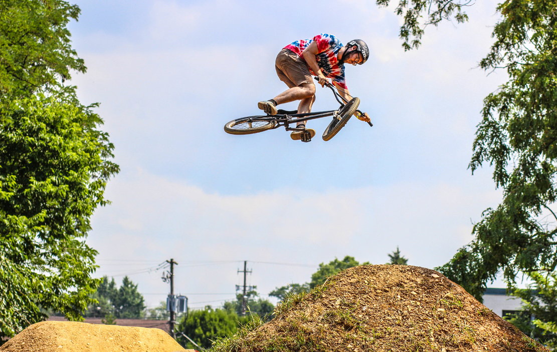 Todd Higer gets some airtime on the dirt jumps after placing 2nd in the Expert Park comp. (Photo: Troy Zeigler / Elevated Visuals)