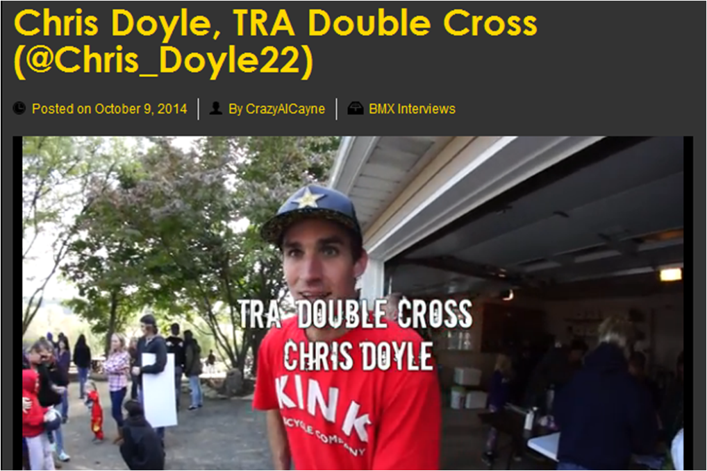Al Cayne caught up with Chris Doyle at the 2014 TRA Double Cross and Dirt Jump Comp. Check it out here at Sugarcayne.com