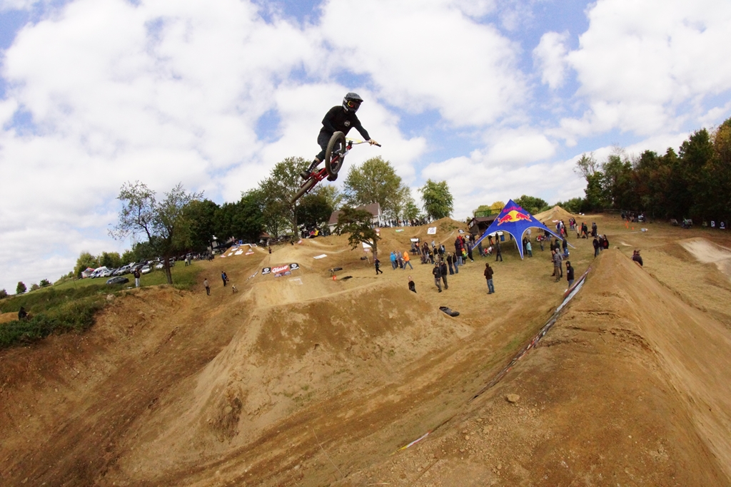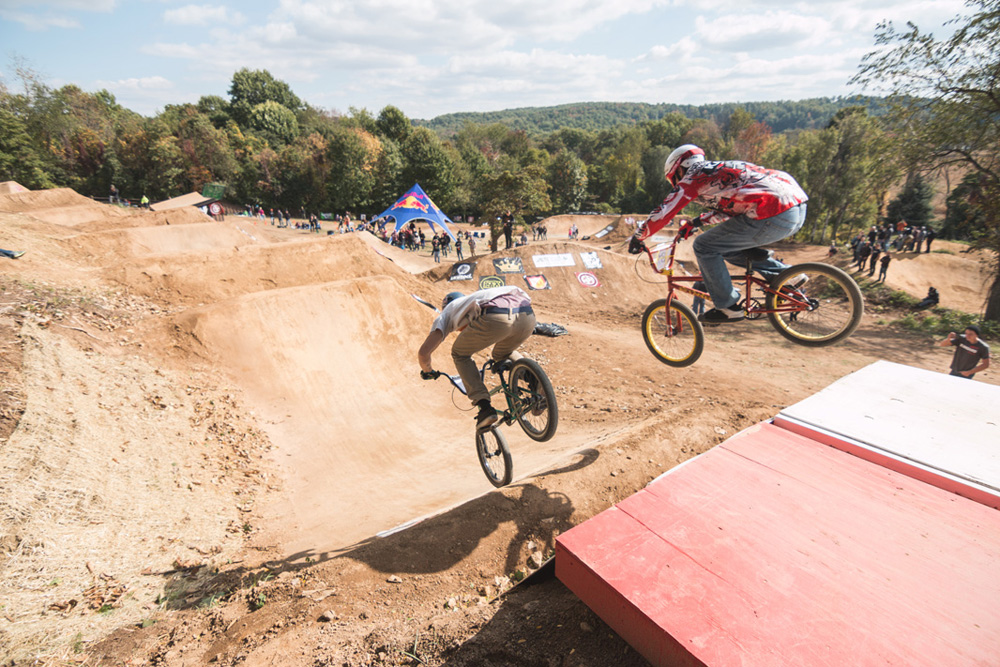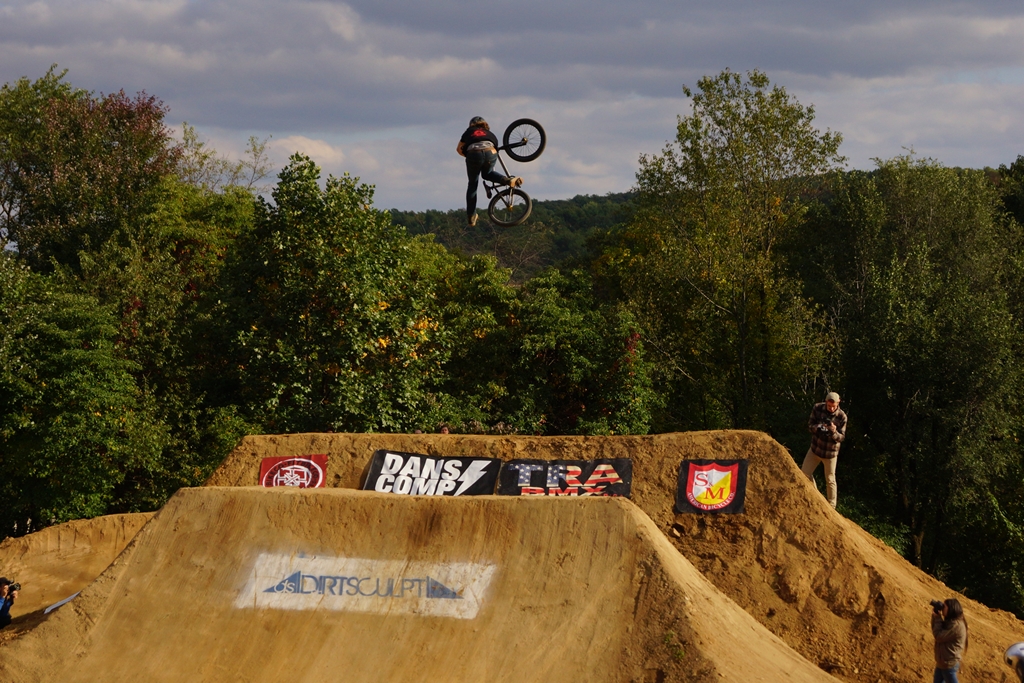 Bethlehem, PA (October 15, 2014) – The TRA Double Cross and Dirt Jump Comp was held Sunday, October 5th, at the TRA backyard compound near Bethlehem, PA. Twenty seven riders from around the globe came together for this historic event featuring the return of bicycle motocross racing in its purest form – straight from the trails and fun for all. With top AA pro racers, X Games Gold Medalists, NORA cup legends, street riders, dirt jumpers, park riders, and plenty of core trail riders in attendance, the event was a melting pot of all riding disciplines that left everyone smiling and psyched for the future. Event promoter and TRA founder, Mike Gentilcore explained: “This event brought the riders, media, and industry together to celebrate all things BMX. Together, we accomplished the goal of showing the world that BMX racing is alive and well, bringing it back home to all other forms of riding in the sport.”